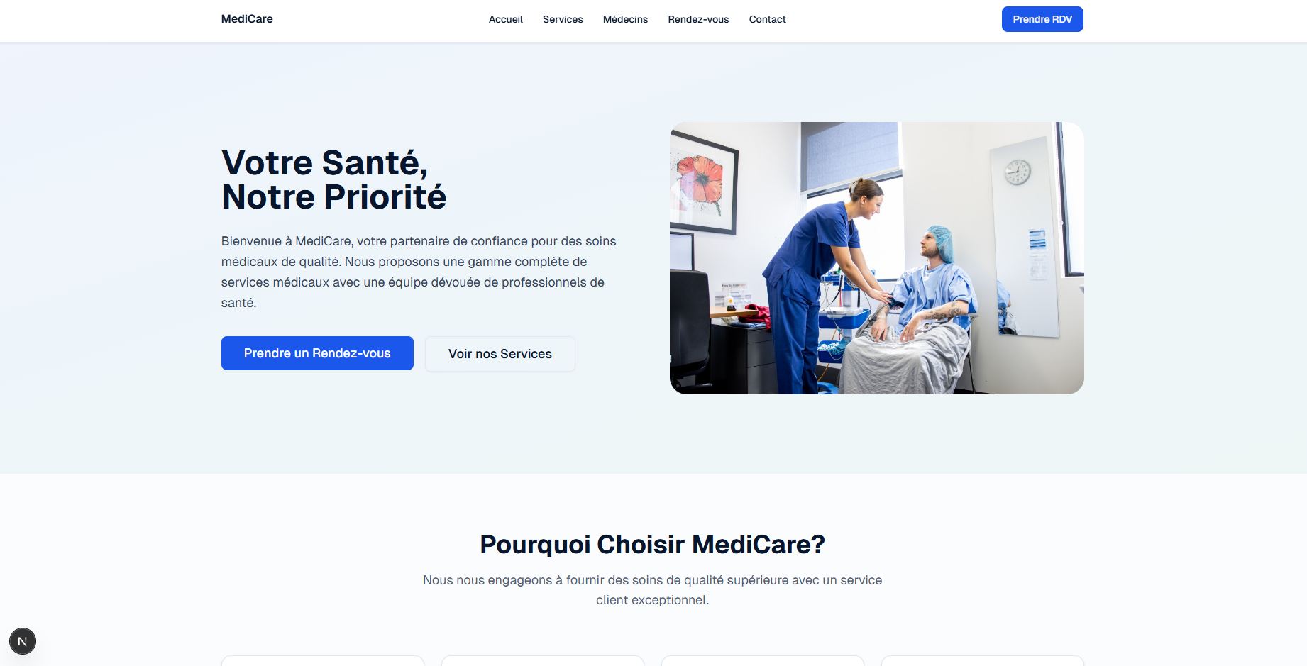 Découvrez un site web complet pour cliniques, conçu pour moderniser la gestion des patients et votre présence en ligne. Développé avec Next.js, Node.js et CSS, rapide, sécurisé et facile à administrer, il propose : landing page professionnelle, page Médecins dynamique, prise de rendez-vous en ligne, panel Admin puissant, interface responsive et notifications en temps réel pour un suivi efficace.
